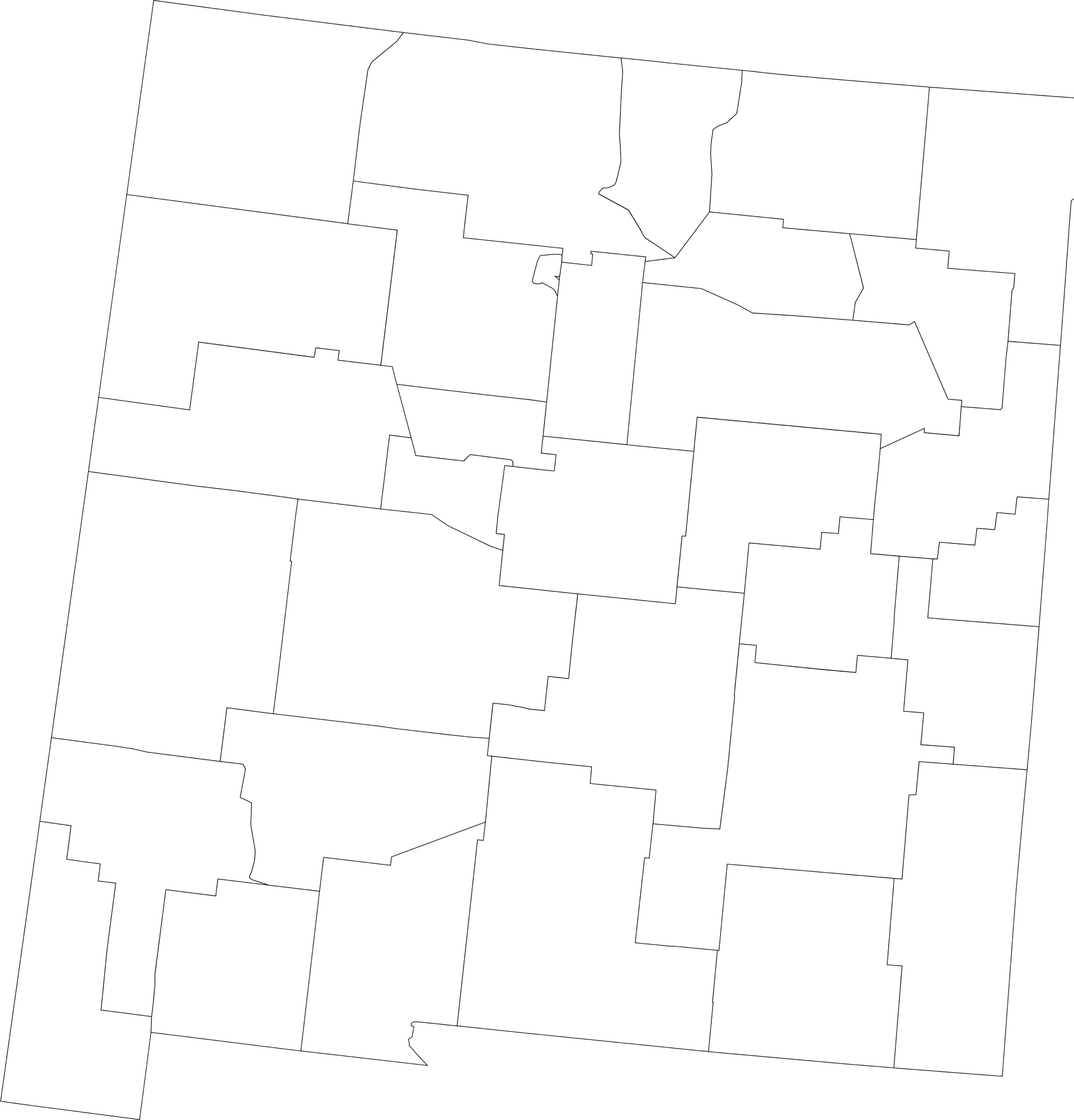 The blank county map of New Mexico includes all county borders without labels. It’s excellent for: