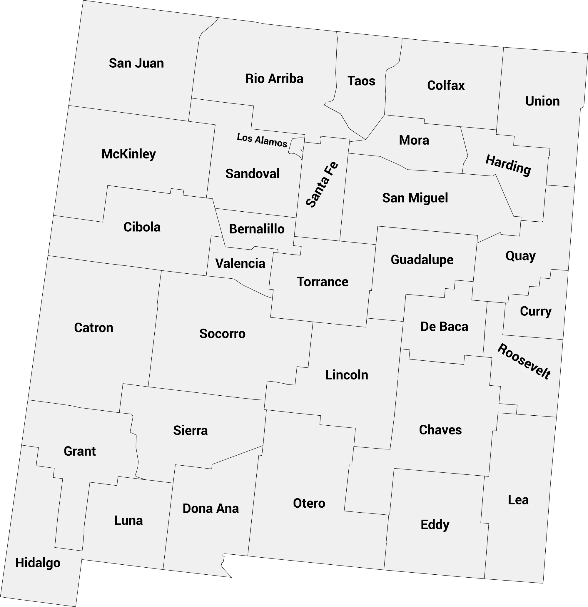 The labeled New Mexico County Map clearly shows all county boundaries and names. It’s perfect for: