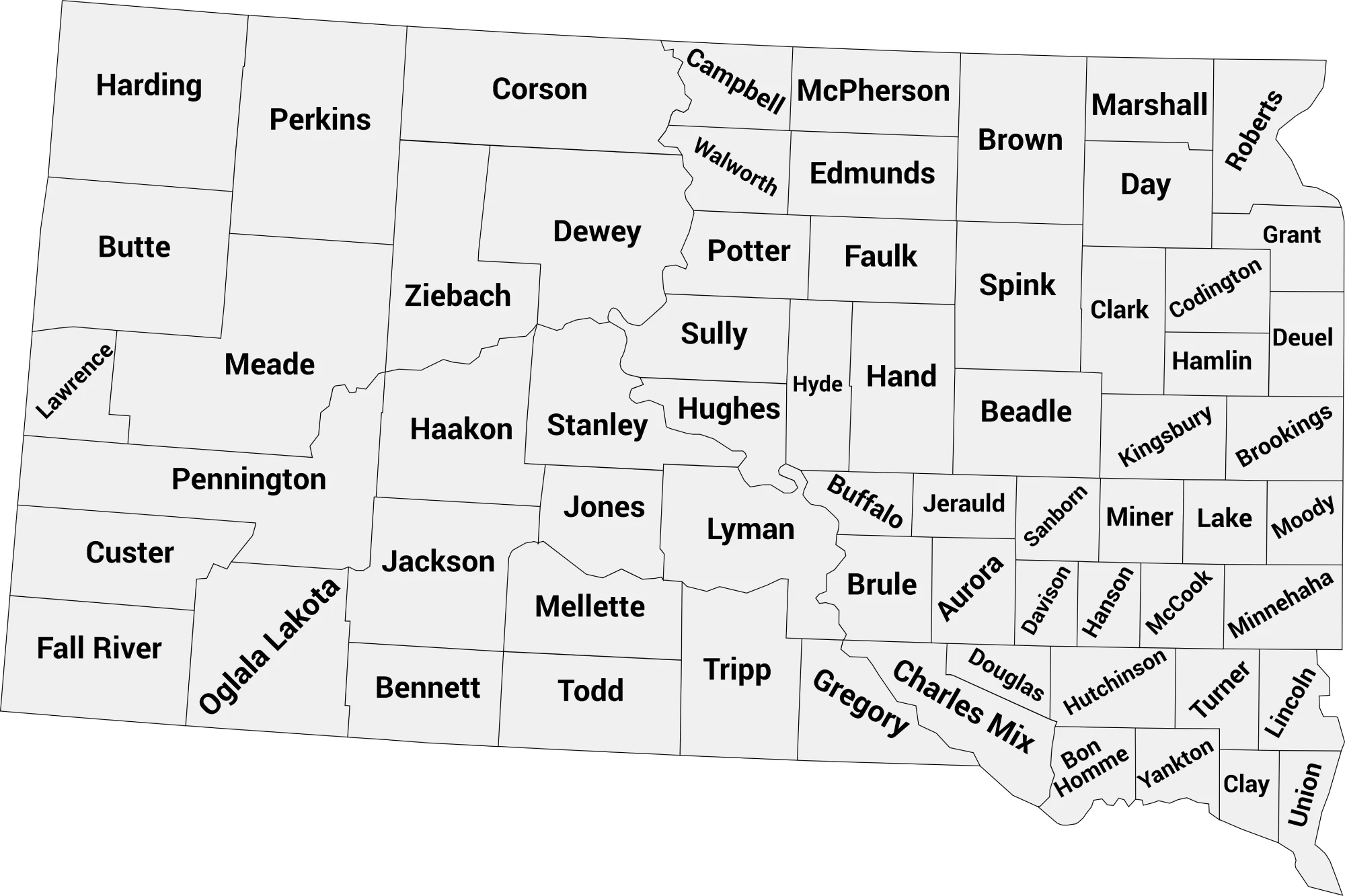 🗺️ South Dakota County Map – With Names and Blank Outline